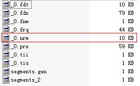 当我们添加10001篇文档,所有的文档都设为Field.Index.ANALYZED_NO_NORMS的时候,我们看索引文件,发现.nrm文件只有1K,也即其中除了保持一定的格式信息,并无其他数据。