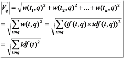 VqVd = tf(t1, d) idf(t1) idf(t1) + tf(t2, d) idf(t2) idf(t2) + …… + tf(tn, d) idf(tn) * idf(tn)