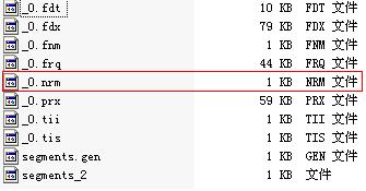 当我们添加10001篇文档,所有的文档都设为Field.Index.ANALYZED_NO_NORMS的时候,我们看索引文件,发现.nrm文件只有1K,也即其中除了保持一定的格式信息,并无其他数据。