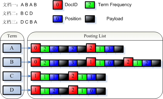 Payload信息就是存储在倒排表中的,同文档号一起存放,多用于存储与每篇文档相关的一些信息。当然这部分信息也可以存储域里(stored Field),两者从功能上基本是一样的,然而当要存储的信息很多的时候,存放在倒排表里,利用跳跃表,有利于大大提高搜索速度。