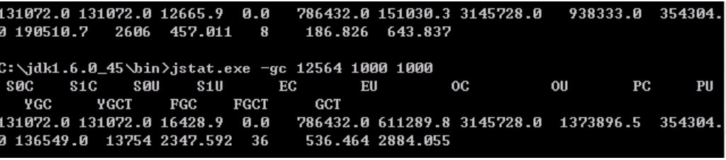 PID.然后调用JDK自带的命令:1$ jstat –gcutil PID 重复次数 间隔时间获取当前JVM的内存信息: