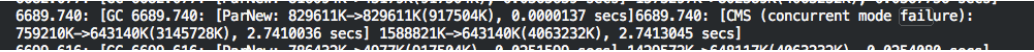 经过oracle等论坛的查询和源码的分析,发现出现这种现象有一种情况就是当年轻代GC的时候,他需要向老年代晋升对象,而老年代的空间如果不够年轻代晋升的对象时(这里有一个误区,也是让我疑惑了很久的地方,就是明明老年代的空间大于年轻代,为什么还会不够.原因在于CMS方式的GC是不会整理内存的,内存空间是一个一个的片段.当老年区的最大连续内存片段小于年轻代晋升的对象大小时,JVM就会认为空间不足),就会发生MinorGC失败,从而JVM尝试进行FullGC.因此,可以得出一个结论就是年轻代和老年代空间大小比过小了.在不增加堆空间大小的情况下,就只能减少年轻代的空间.因此,重新修改年轻代大小为1G.Survivor空间调优