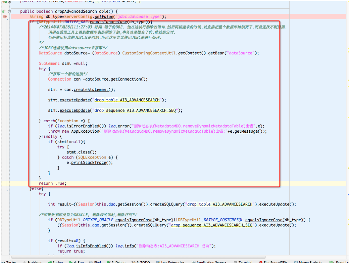 今天在做高级检索的时候,当用户在界面配置了高级检索的字段后,需要程序自动的把AI3_ADVANCEDSEARCH表删除后,重建.本来这个功能在XDA和xSpace上是能正常工作的.