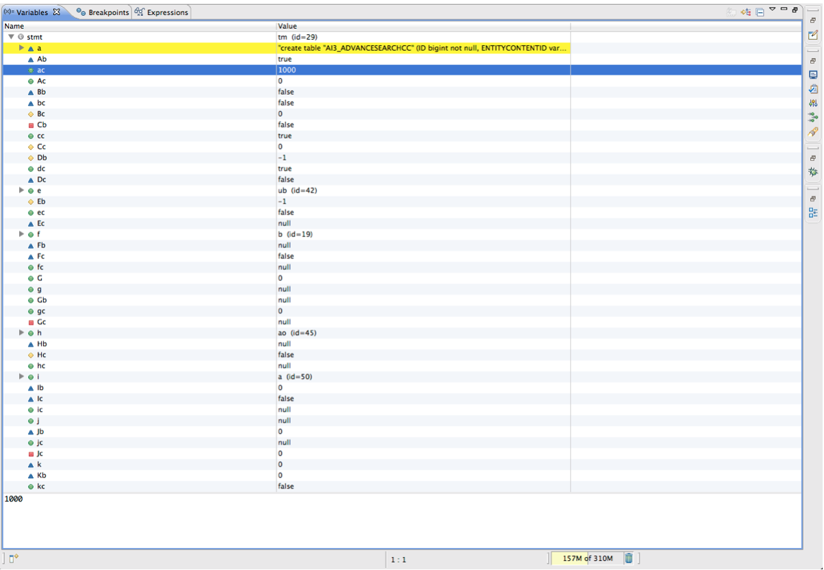 它所有的字段,属性全部都是 a b c d 的命名.大致对比了一下.还是没发现问题.无耐.只有重新再来.经过五六次的不断断点,不断重启DB2. 发现一个很怪异的现象.