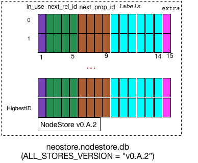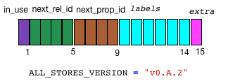- node_id=0 (即数组下标为0) 的node record 是在使用的, nextRelId=0, nextPropId=1, labels=0, extra=0
