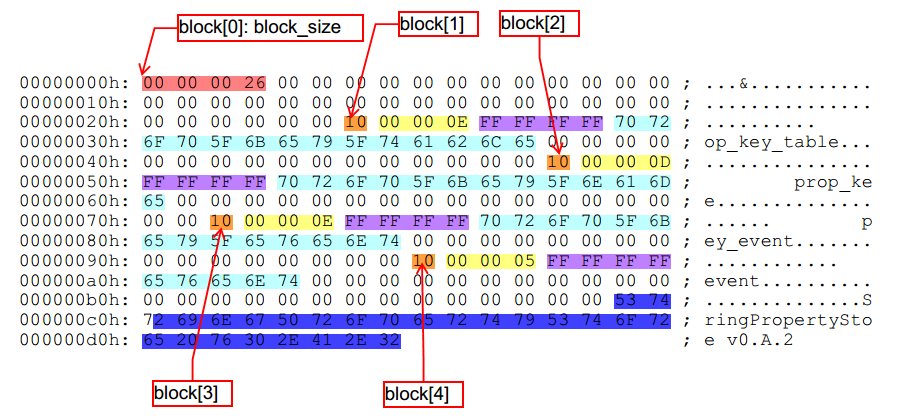 - 第0个block 的前4个Bytes 保存 block_size=0×80, 即 block_header_size=8 和 string_block_size=120