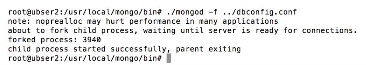 分别在三台机器上执行:1./mongod -f ../dbconfig.conf