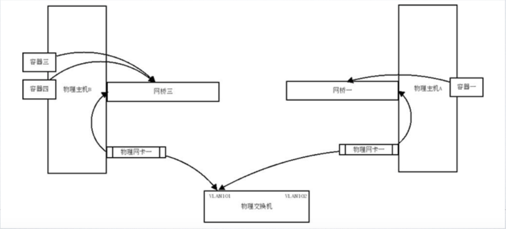 要实现这个需要在docker run的时候使用—net=none的方式关闭docker默认的桥接方式连接网络.而是手动的配置网络