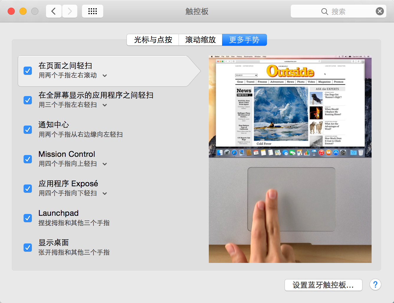 自从Macos10.8以后,苹果把鼠标和触控板的滑动方向给反向了,也就是鼠标向下滑动,页面是往上走的.这和Ipad这些操作是一样的,但是我总觉得在电脑上有点奇怪.所以需要修改下. 同时还有就是鼠标和触控板的多点控制,比如两个指头是切换屏幕啊,轻触是右键啊等等 都是在 设置-鼠标和设置-触控板里面设置.