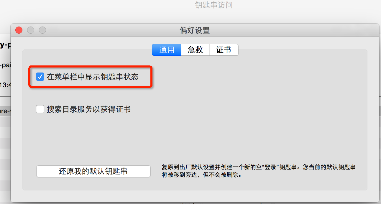 在公司上班,谁都有离开位置的时候,为了防止电脑可能被其他人随便操作,一定的安全措施还是需要的.最简单的方法就是直接把电脑屏幕给合上,那么再次打开的时候就要求输入密码.但是这样电脑就会休眠,而且如果外接了显示器的,有可能本来笔记本就是合上的(在mbp接上电源,外接键盘和鼠标的情况下.如果合并笔记本屏幕,那么就会单输出图像到外接显示器,这个时候系统是不会休眠的).那么还有一个方法就是使用钥匙串的功能,一键锁定计算机,并且关闭屏幕显示. 这个就是在应用程序-实用工具-钥匙串访问中.