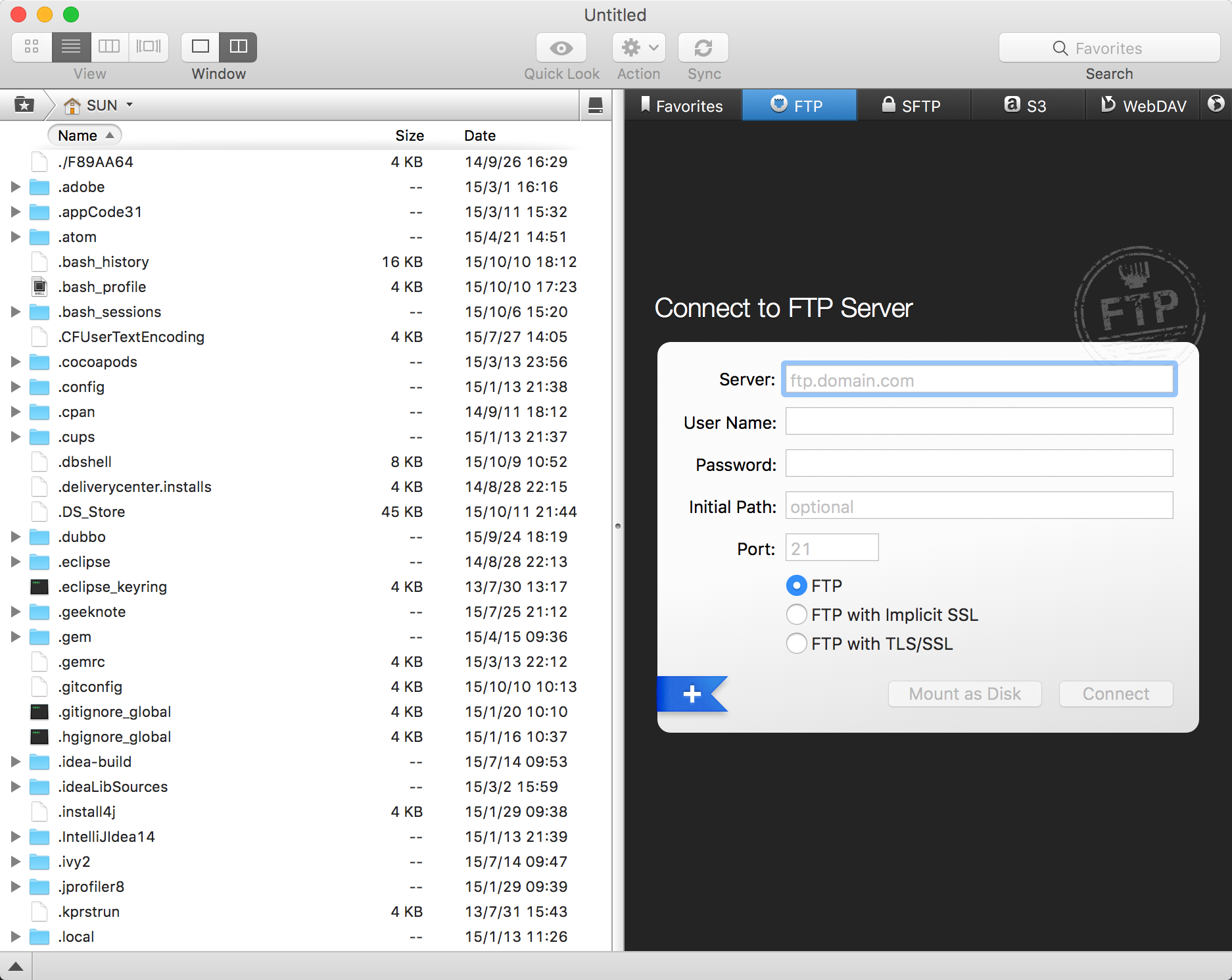 非常好用的sftp工具,他提供了FTP SFTP S3 的文件访问.并且支持标签组的操作,以及直接双击打开关联的工具修改文件并自动上传.还支持各种姿势的拖拽操作.总之非常方便,强烈地推荐.