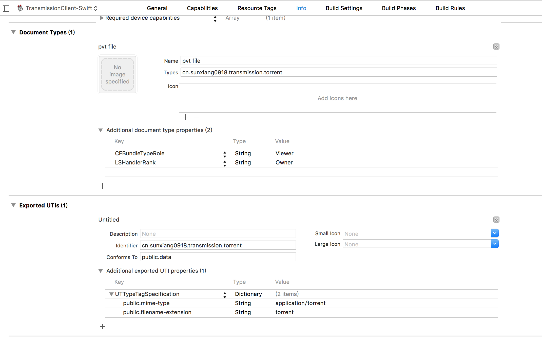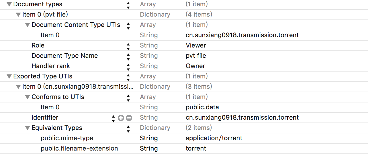 在做App的时候,可能会遇到你的程序可以打开某种类型的文档.比如用户在safari中下载了一个torrent类型的文件,然后需要直接使用你写的App打开.那么这个时候就需要在编写App的时候进行文档类型的注册了.